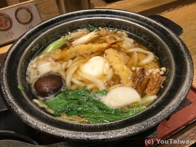 另外一個是鐵鍋烏龍麵(熱)¥1680,有兩尾炸蝦、蔬菜、香菇等等,跟照片差不多。