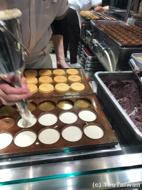 不得不說,他們這一大片玻璃窗,讓客人可以看到整個車輪餅的製作過程,跟鼎泰豐一樣,不自覺就會被吸引過去,就算肚子不餓也會有點心動。一個人不知道要吃什麼的時候,推薦買一個紅豆餅來填一下肚子。
